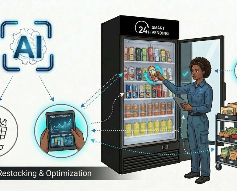 We proactively monitor stock levels via the AI system and send a team to restock and rotate products, ensuring the machine is always full and fresh with what customers want.