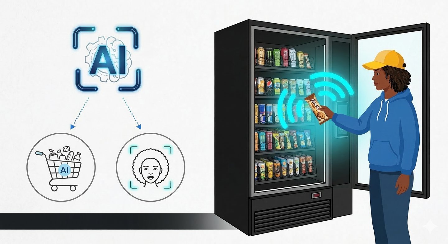 Open the door. Grab multiple items at eye level while AI sensors track your selections seamlessly.